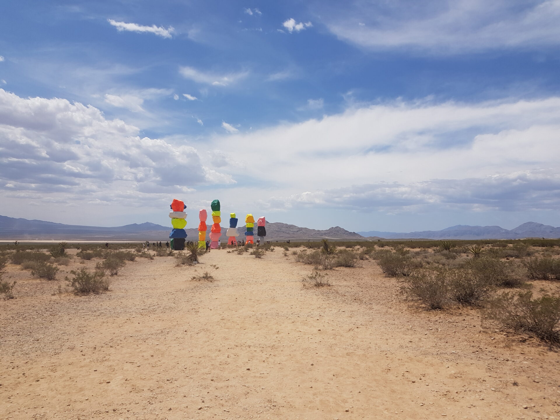 Wir wurden nachmittags bei unserer Familie in Kalifornien erwartet und planten vorher noch einen Besuch bei Peggy Sue’s 50’s Diner (unser jährliches Ritual!). Also verließen wir Las Vegas frühzeitig, um genug Zeit für die Seven Magic Mountains zu haben.