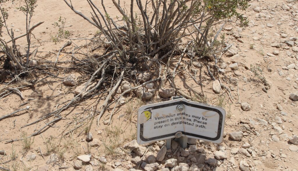 Ein kurzer Weg führt vom Parkplatz zu den Türmen. Achtung: Entlang des Weges stehen Warnschilder – hier kann es Schlangen geben, darunter sogar Klapperschlangen!