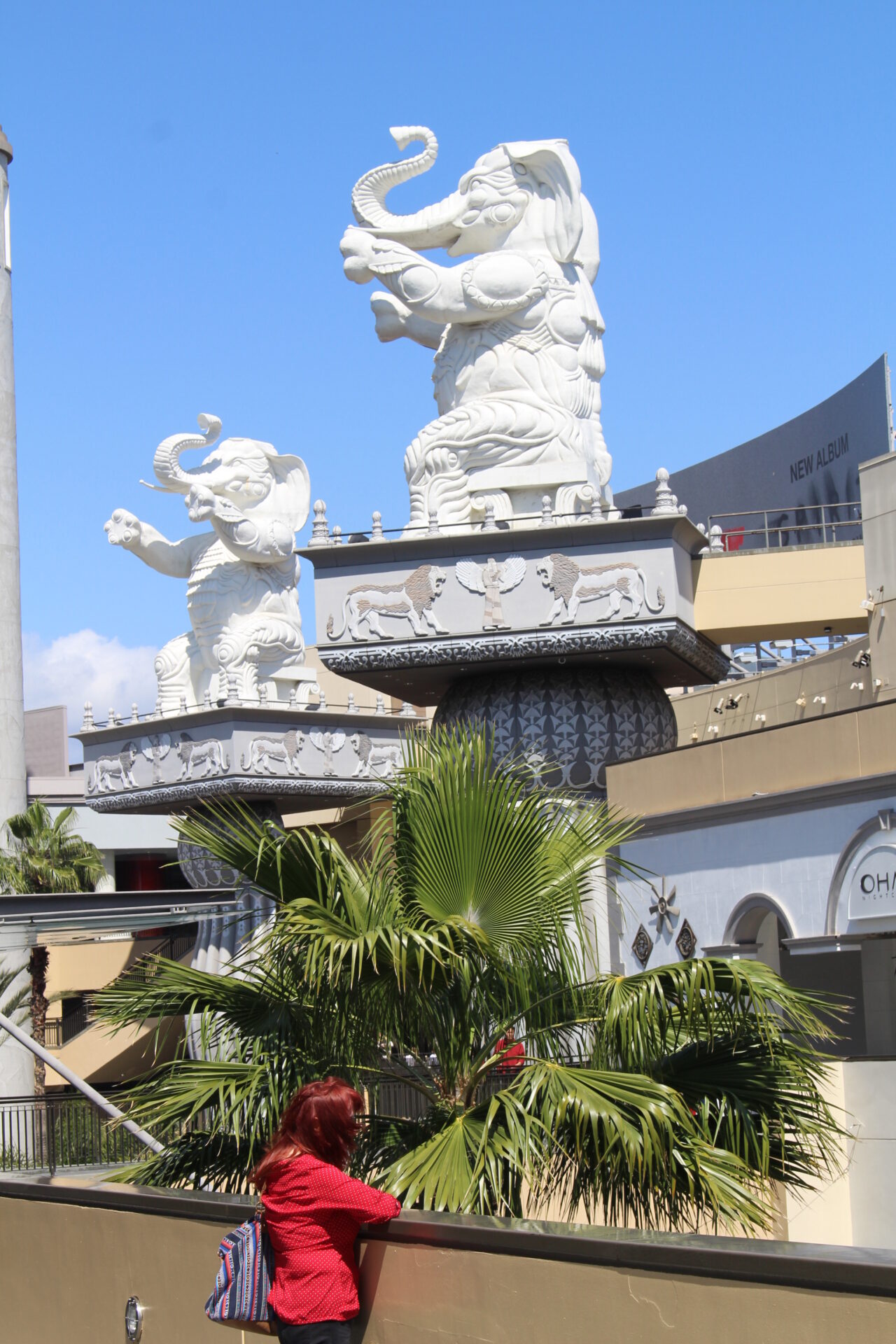 Sehenswert sind auch die zwei auf hohen Säulen sitzenden, riesigen imposanten weißen Elefantenstatuen.