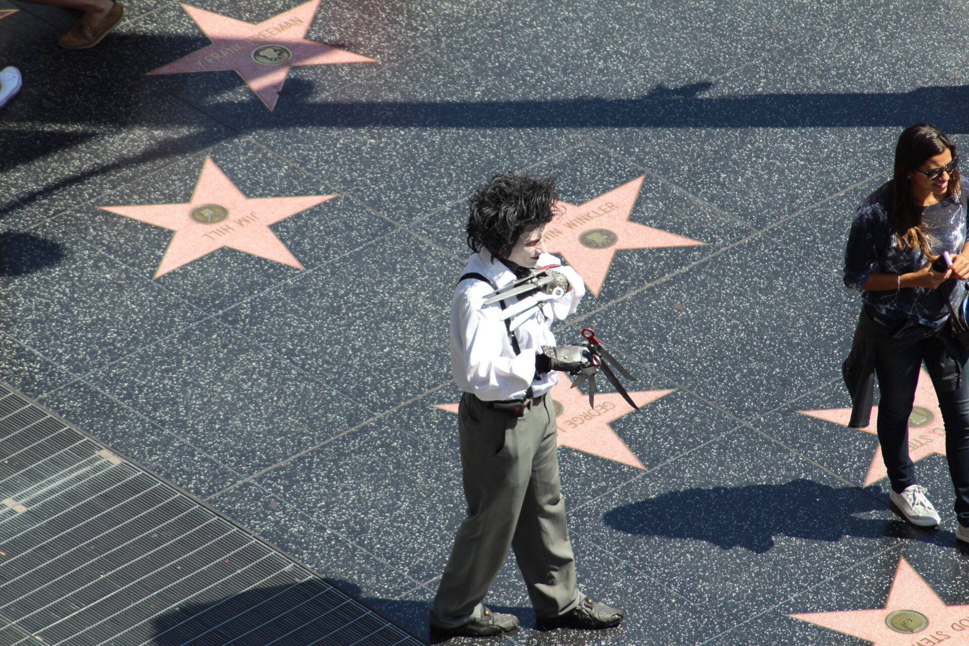 Dort oben, weg vom Gewimmel des Hollywood Boulevards, ist der ideale Ort um tolle Fotos zu machen. Mit einem Teleobjektiv kann man hier zum Beispiel Edward mit den Scherenhänden beobachten. Auch X Men, Batman, Micki und Minni Mouse usw. kann man von dort oben gut ablichten.