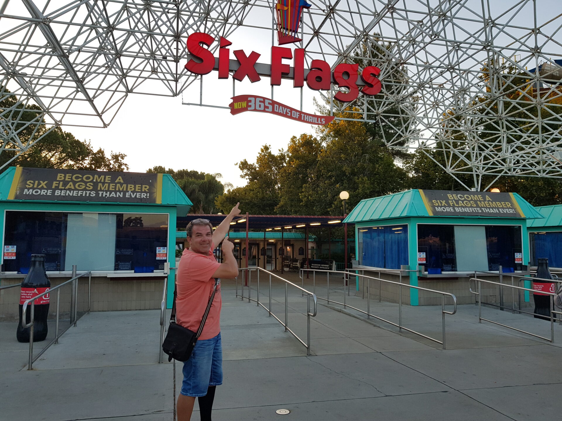 Unsere Familie in Los Angeles hat für alle in der Nähe liegenden Freizeitparks Jahres- oder Saisonpässe und natürlich auch für Six Flags. Was sie aber nicht wussten, sie dürfen einmal im Jahr einen Besucher mitbringen und diese müssen dann nur 10 $ pro Person zahlen.