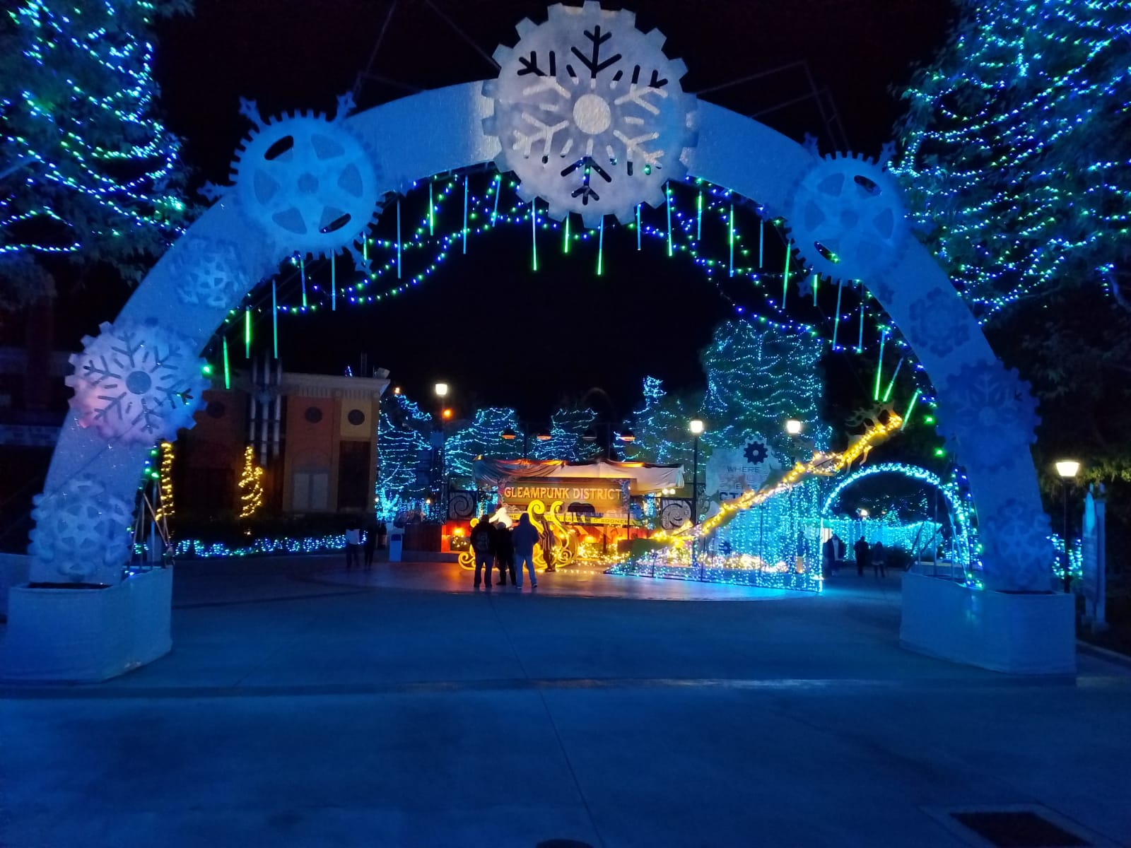 Six Flags Magic Mountain ist nicht nur im Sommer einen Besuch wert. Der Park bietet auch saisonale Events, und eins davon ist besonders zauberhaft: Holiday in the Park. Vom 23. November bis zum 5. Januar verwandelt sich der Park abends in ein winterliches Wunderland. Überall gibt es traumhafte Weihnachtsdekorationen, und man wird in eine magische Welt entführt, sobald man den Park betritt.