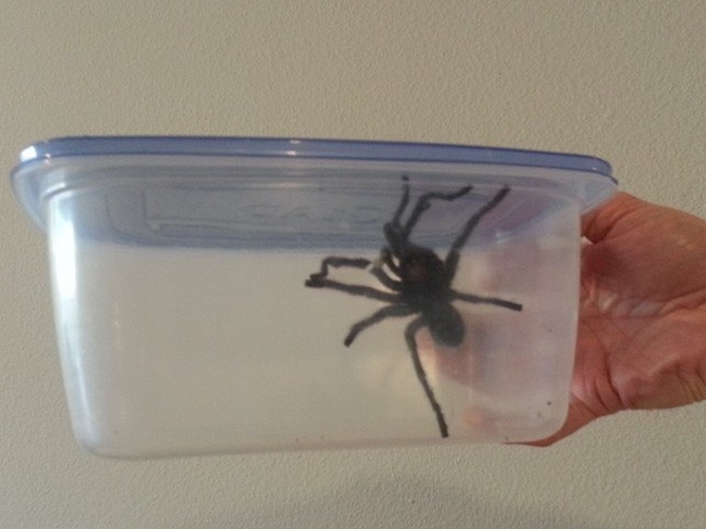 Ich weiß ja eigentlich, dass diese Riesenspinnen meist ziemlich ungefährlich sind und der Biss einer Tarantel nicht schlimmer sein soll als der einer Kreuzspinne. Als mein Sohn die Spinne dann allerdings auch noch tatsächlich einfing, um sie mir stolz in einer Dose zu präsentieren, bekam ich einen regelrechten Schreikrampf.