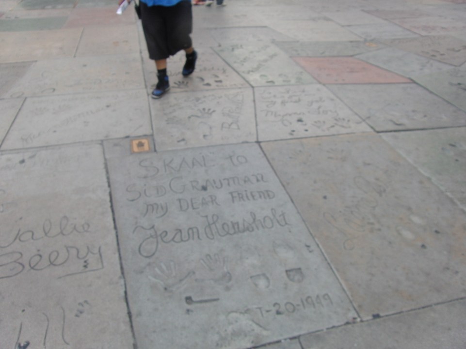 Man findet vor dem Theater bekannte Filmstars wie beispielsweise Jack Nicholson, George Clooney, Harrison Ford, Johnny Depp oder Adam Sandler. Außerdem haben auch diverse nicht mehr lebende Künster hier ihre Abdrücke in Beton hinterlassen. Dazu gehören Marylin Monroe, Dean Martin, Ginger Rogers, Fred Astair und natürlich auch Cary Grant. Übrigens auch die Deutsche Schauspielerin Hildegard Knef ist dort unter den vielen Abdrücken zu finden.