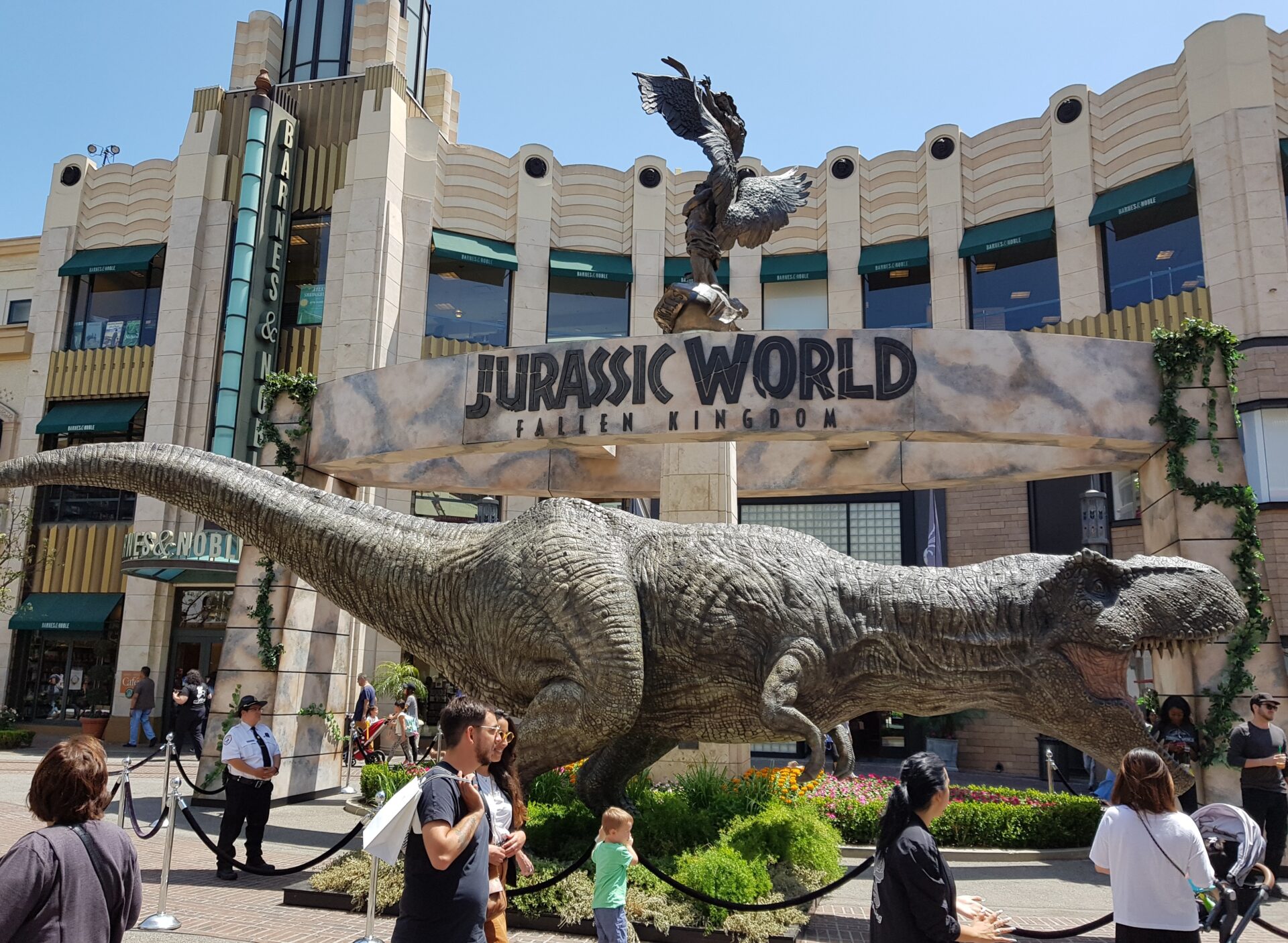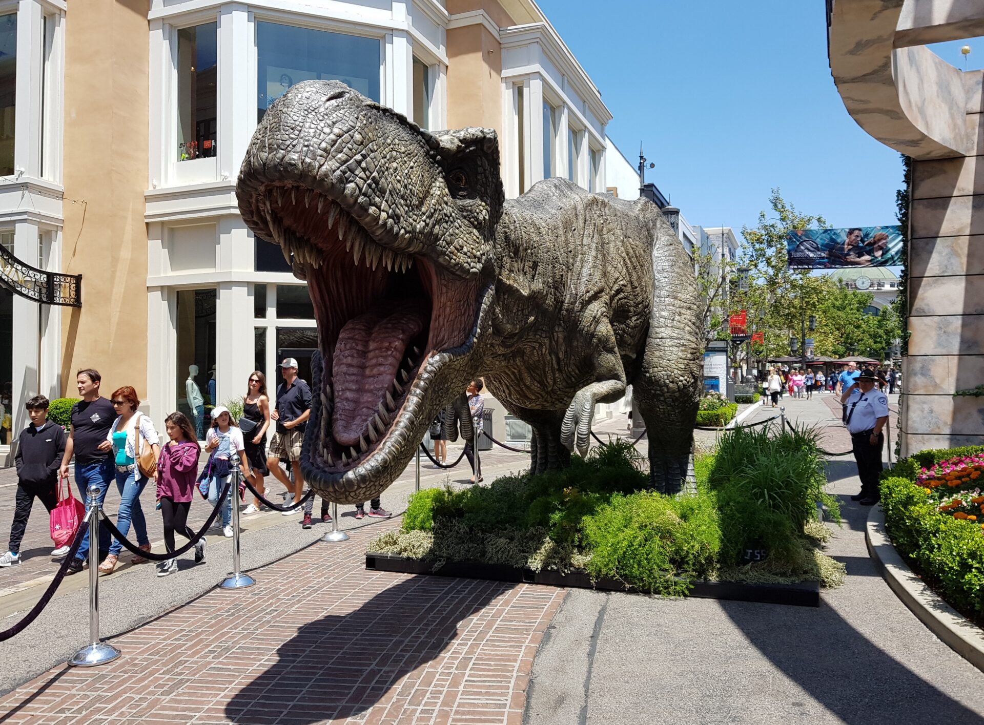 Bald sollte die Filmpremiere von Jurassik World sein, der natürlich im dort befindlichen Kino auch gezeigt werden sollte. Dafür wurde mitten im Einkaufszentrum The Grove ein Riesengroßer T Rex aufgebaut und mit dem wollten wir unseren Enkel überraschen.