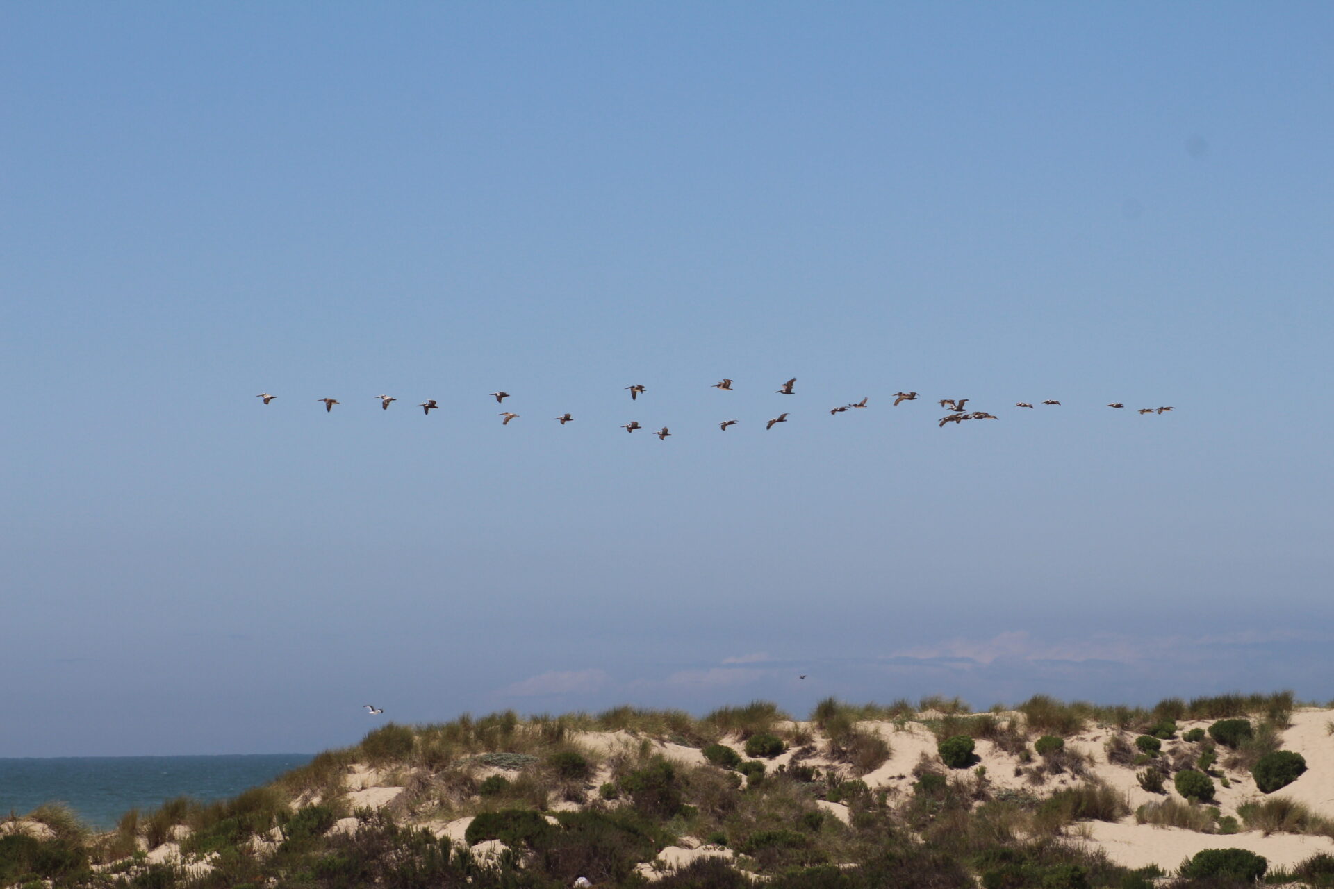 Ein verborgenes Geheimniss an der Gold Coast und für uns bisher der schönste Strand in Kalifornien. Ein breiter, endloser, fast menschenleerer Sandstrand so weit das Auge reicht. Einige Hundebesitzer machten einen Spaziergang und ein paar sportliche joggten am Rande des Pazifiks. Ganz Mutige vergnügten sich sogar im Wasser, obwohl es recht windig und etwas kühl war. Wir gingen lieber am Strand spazieren und hatten das Glück Delphine zu sehen, die ganz nah in der Brandung spielten.