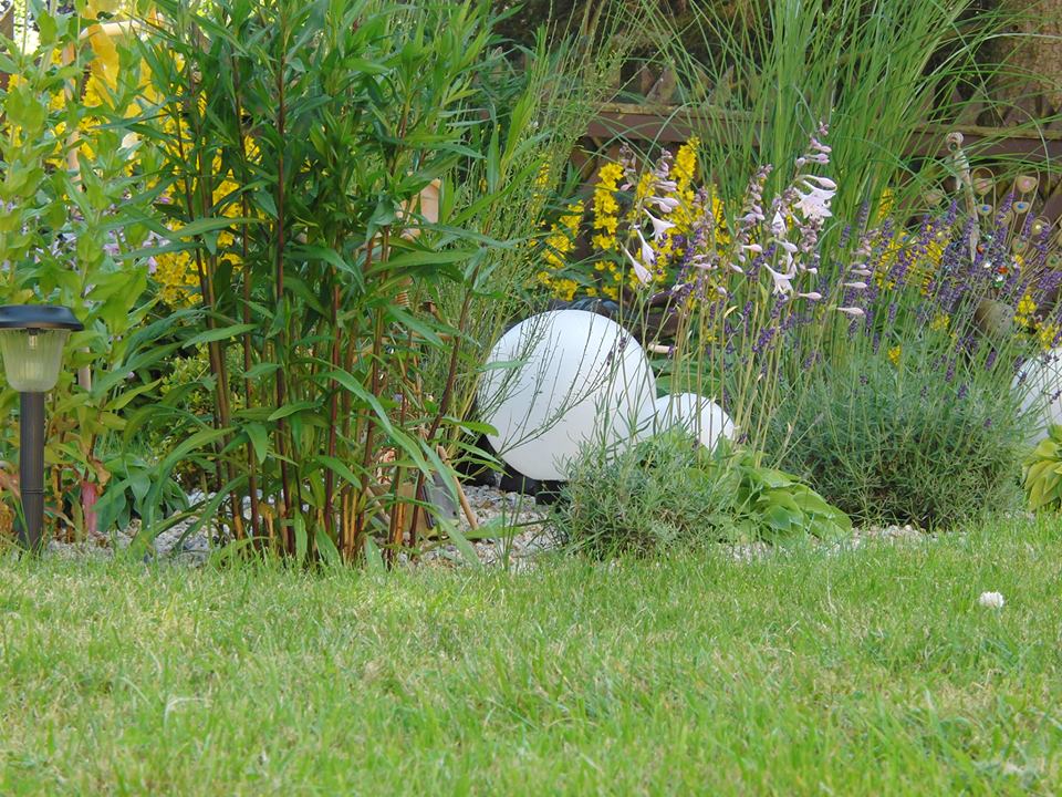 Fast den gesamten Sommer verbringen wir hier, es ist unser idealer Ort für Erholung und Entspannung. Wohin man sieht, Blumen, Solarlichter die im Dunkeln Leuchten und auch einige Figuren, die meine Mama die bei uns lebt, sehr liebt.