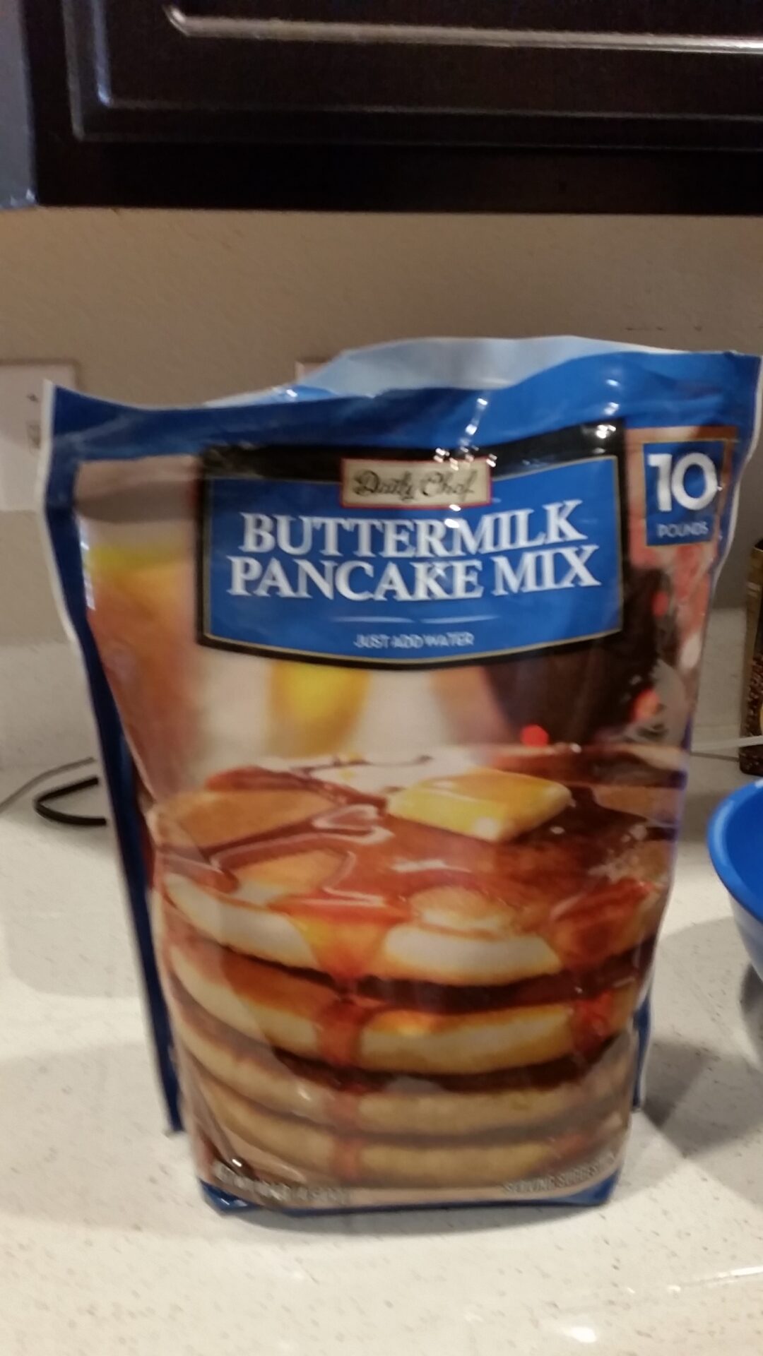 In den USA gibt es große Beutel fertige Pfannkuchenmischungen, die sich auch für Waffeln eignen. Man fügt einfach die passende Menge Wasser hinzu, vermengt die Masse gut und brät sie in der Pfanne goldbraun. Dafür eignet sich am Besten richtige Butter, damit bekommen die Pancakes einen schönen, knusprigen Rand.