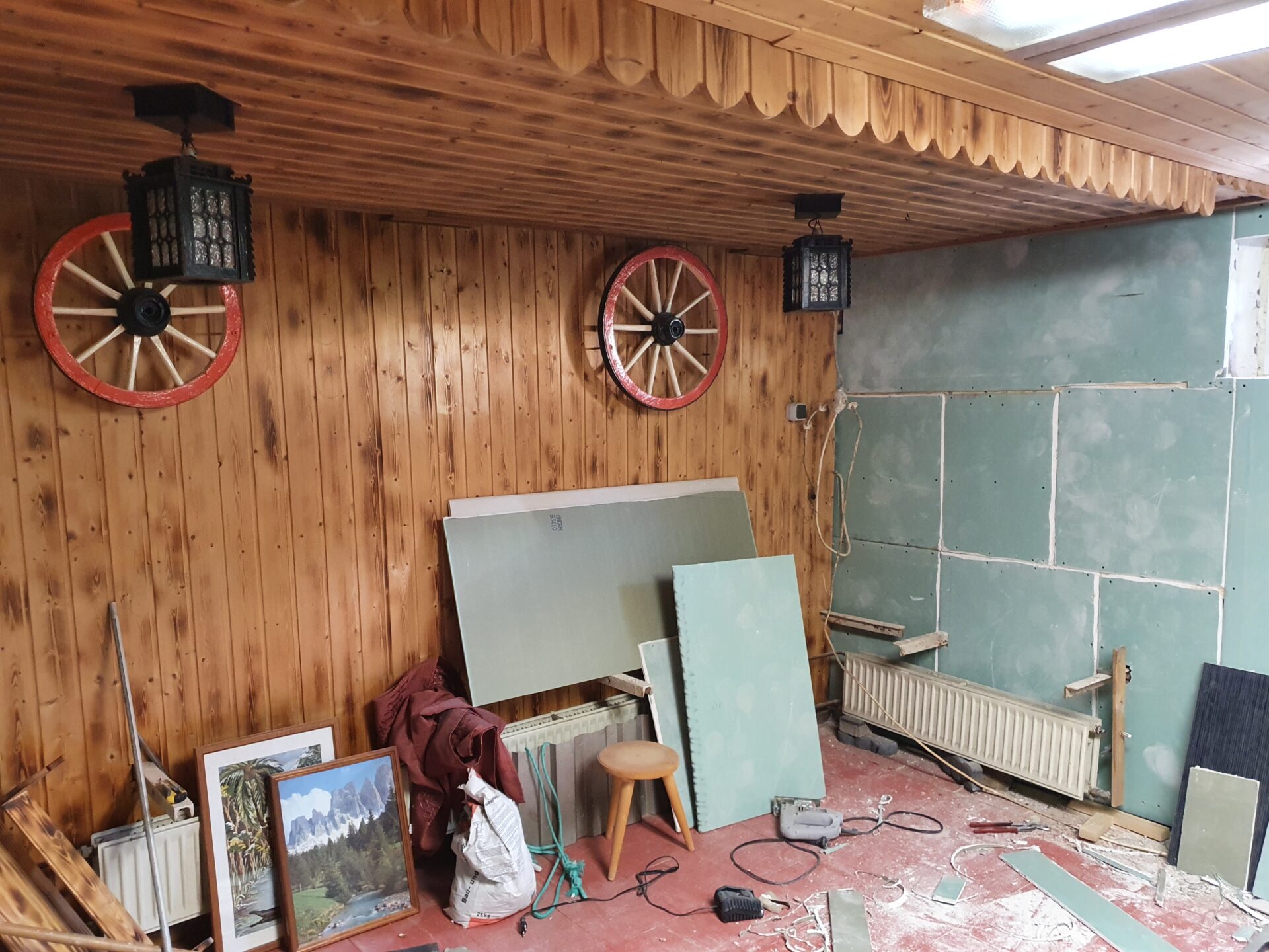 Bei einem Starkregen im Herbst wurde die einstige Kellerbar, die mein verstorbener Vater, einem Zimmermann mit Leib und Seele in unzählbaren Stunden gestaltet hatte, durch den Wasserschaden total zerstört.